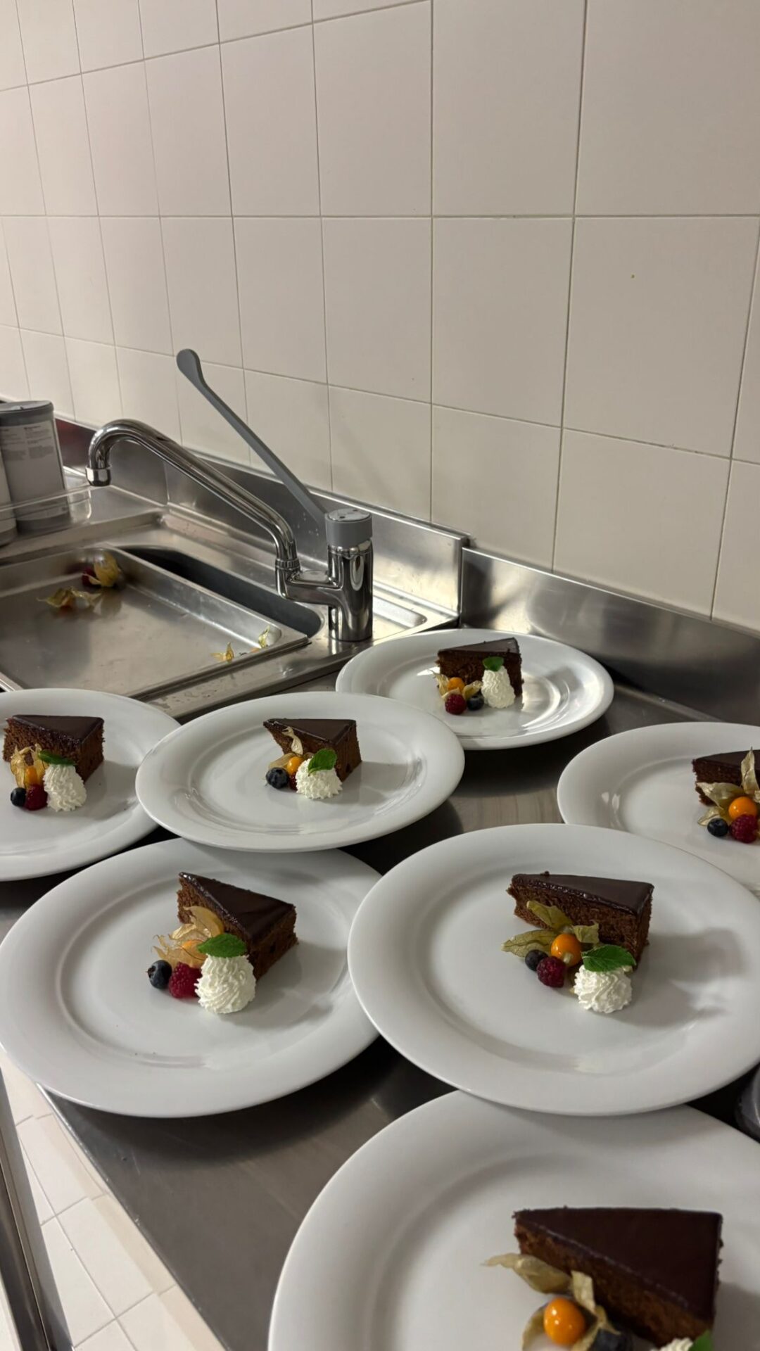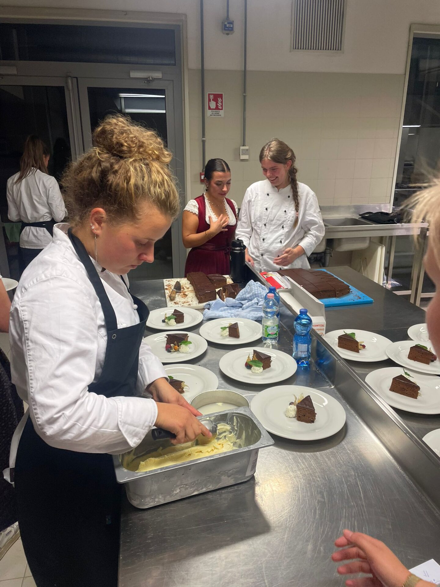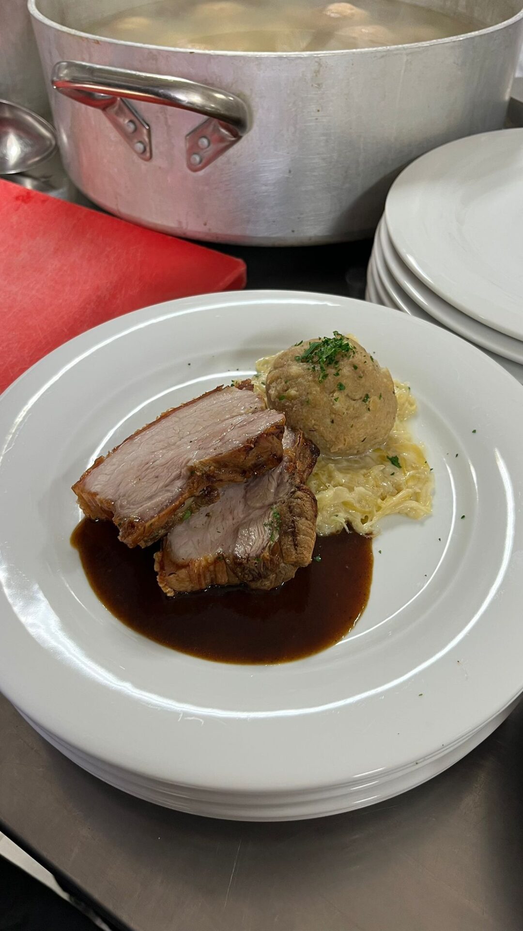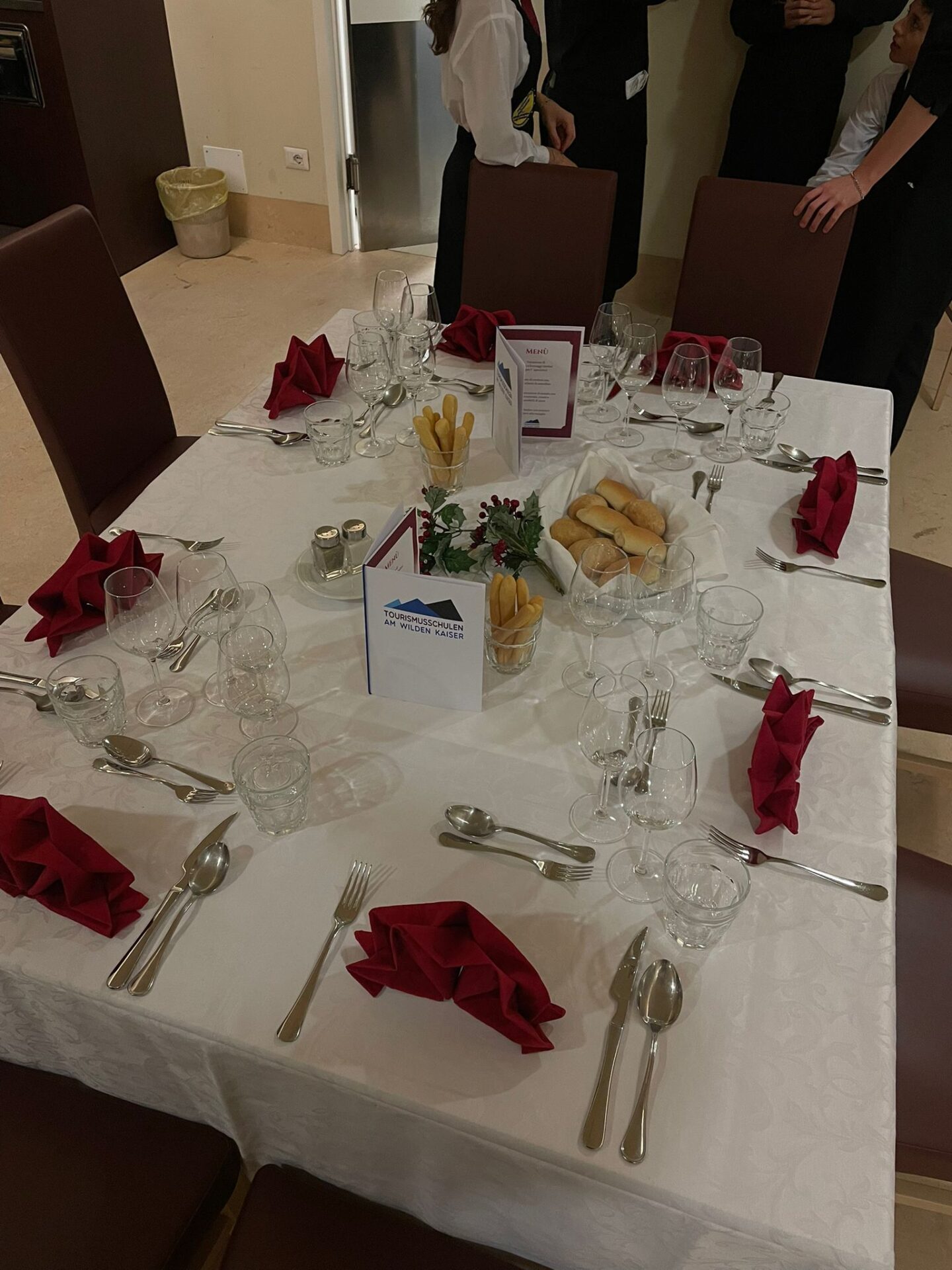 Wie es bereits Tradition bei diesem Austausch ist, fand am letzten Abend vor der Rückreise ein österreichischer Abend statt, bei dem unsere Schüler:innen als Dankeschön ihre Gastfamilien, Ehrengäste sowie Unterstützer des Austausches mit einem typischen Tiroler Menü bewirteten. In traditioneller Tracht – Dirndl und Lederhosen – servierten unsere zukünftigen Touristiker:innen kulinarische Spezialitäten aus Tirol.
