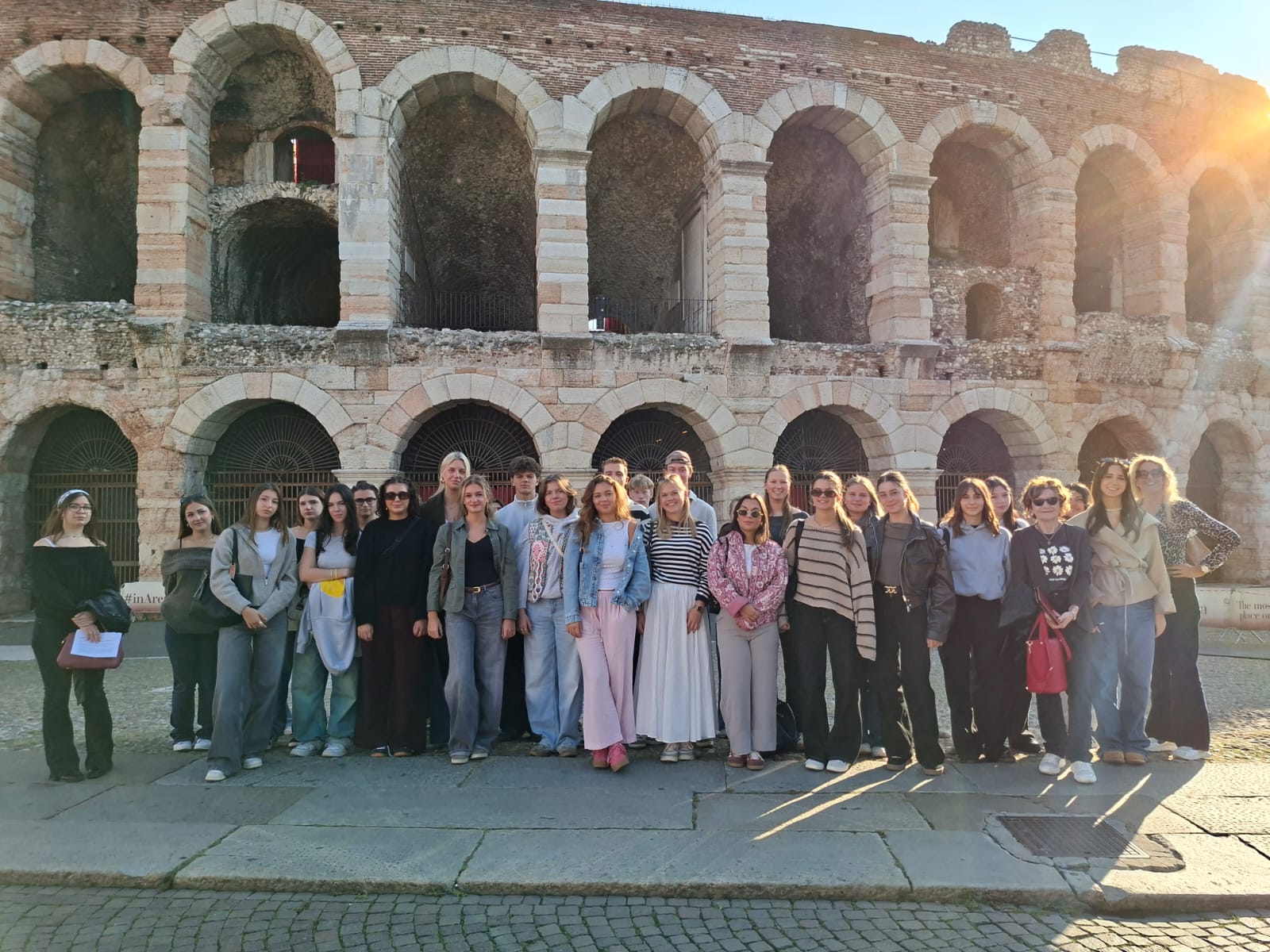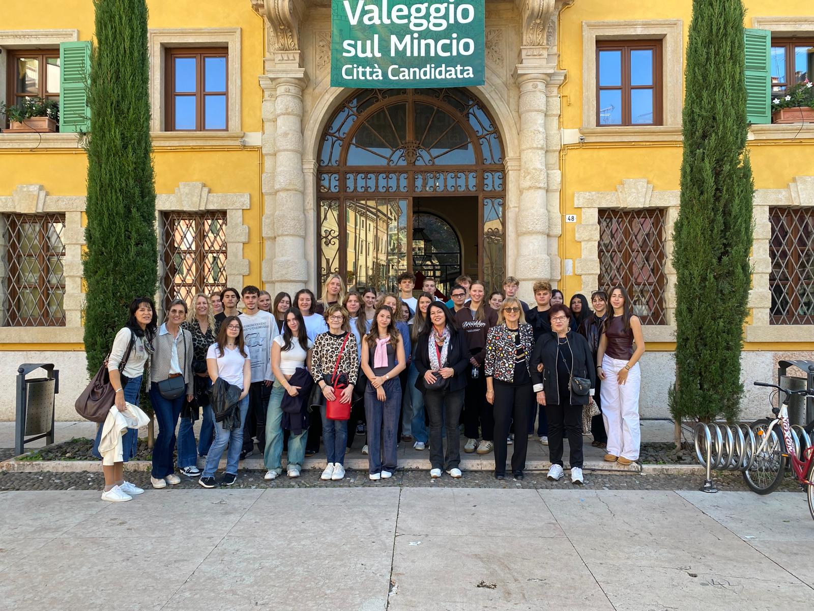 Gleich nach der Ankunft in Valeggio wurde uns in der Schule ein sehr schmackhaftes Mittagessen serviert. Ein fixer Bestandteil ist jedes Mal ein Schulbesuch der Partnerschule. Gleich am ersten Tag besichtigten wir auch Valeggio mit dem bekannten und lieblichen Ortsteil Borghetto. Ferner stand ein Empfang im Rathaus auf dem Programm, bei dem Vertreterinnen der Städtepartnerschaft die Schüler:innen willkommen hießen. Selbstverständlich durfte auch ein Besuch von Verona und Peschiera am Gardasee nicht fehlen.